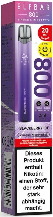 Elf Bar 800 - Blackberry Ice - Einweg E-Shisha - 800 Züge / Nikotin 20 mg