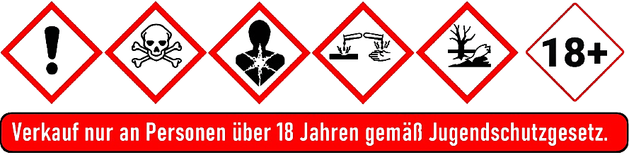 Dieser Artikel enthält Gift und ist nicht zum Verzehr geeignet. Beim Verschlucken raten wir dringlichst Sofortmaßnahmen zu ergreifen und ein Giftinformationszentrum anzurufen, oder ein ärztlichen Rat einzuholen. Bitte die Verpackung, sowie das Kennzeichnungsetikett mit den Inhaltsstoffen bereithalten und sorgfältig aufbewahren!
