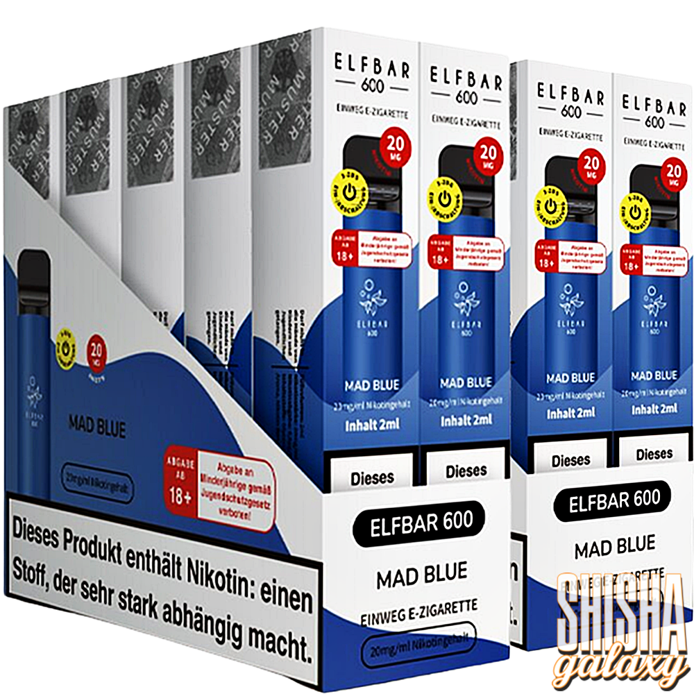 Elf Bar - Mad Blue - 20er Packung / Display (Sparset) - Einweg E-Shisha - 600 Züge / Nikotin 20 mg